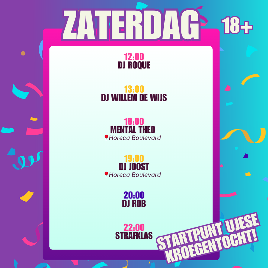 - Zaterdag: 18+
