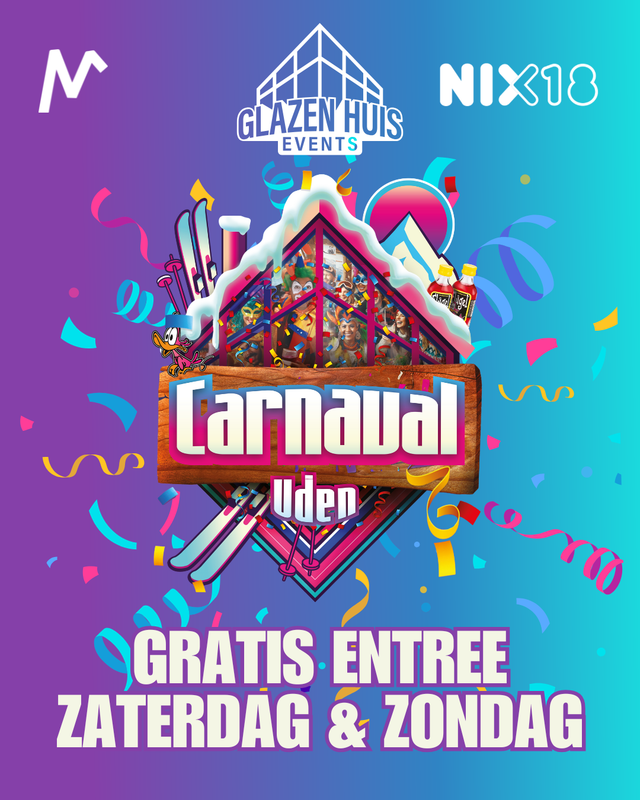 Elk jaar komen van over de hele regio gezellige carnavallers met ons carnaval vieren in Uden. Speciaal voor jong en oud keert Glazen Huis Events dit jaar weer terug! Bekijk hieronder de line-up per dag.